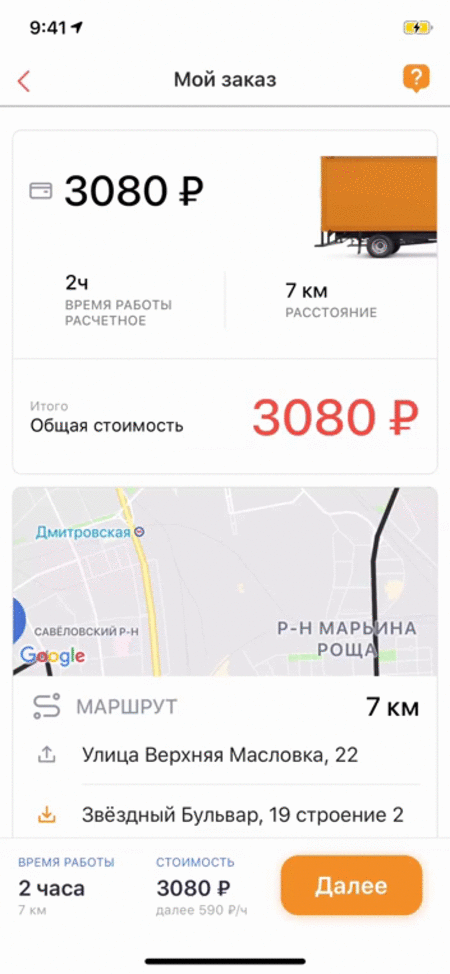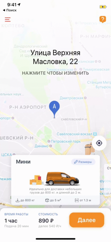 Интуитивно понятное приложение для заказа грузового такси через смартфон.